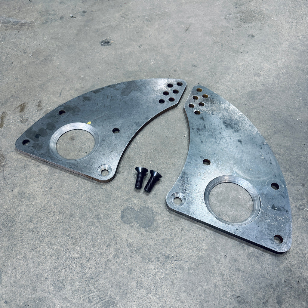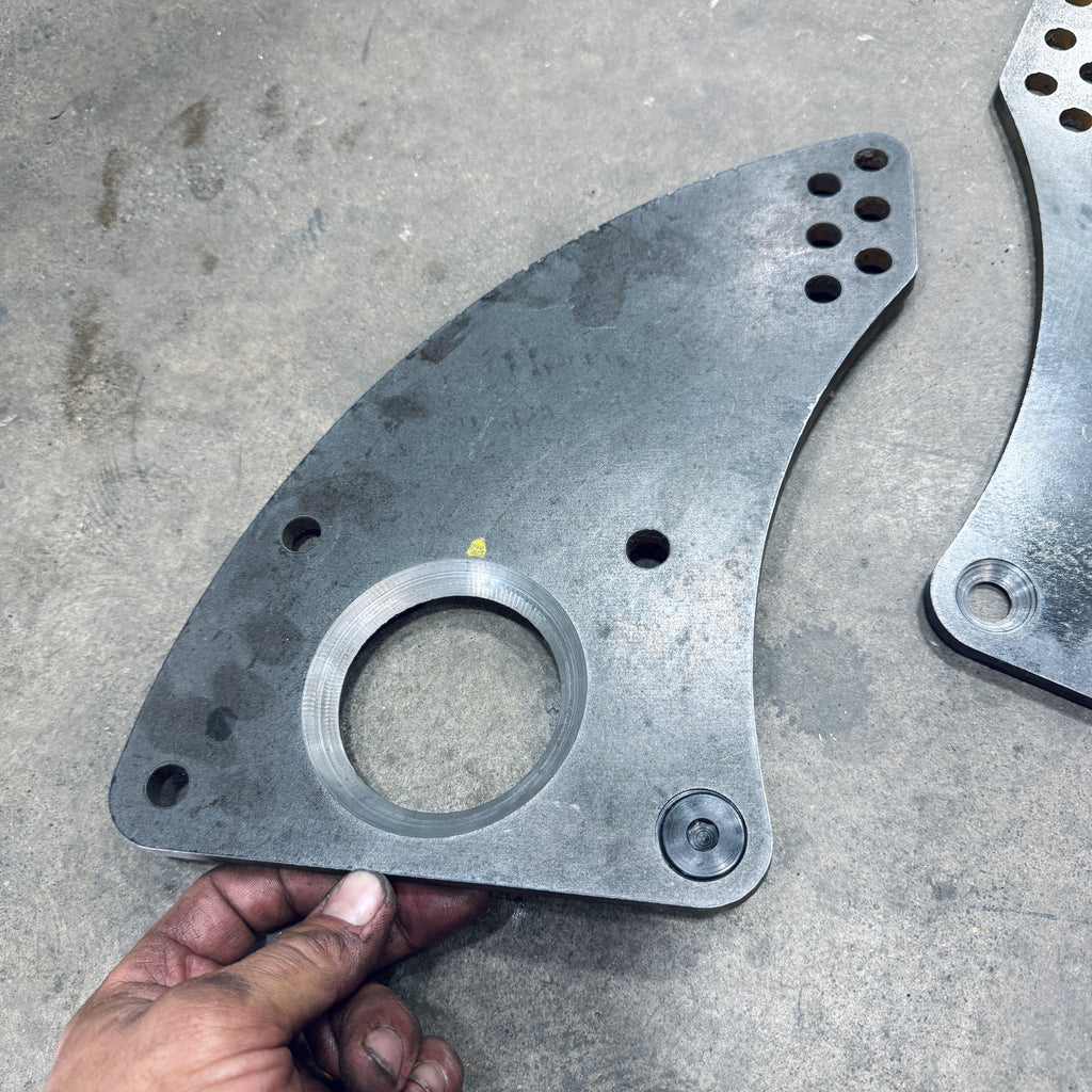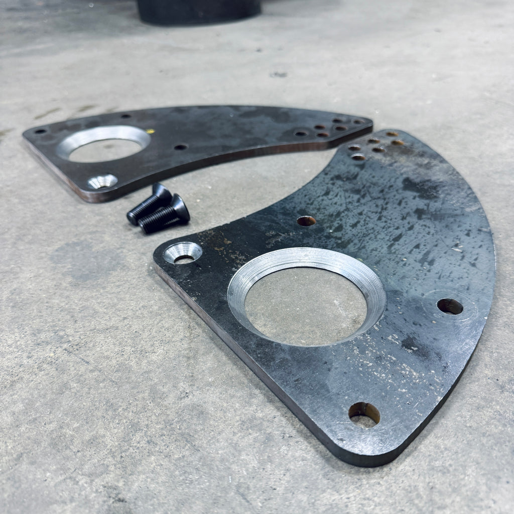 Shock towers designed specifically for 6” narrowed split bus front ends. Waterjet cut from 3/8” plate You must use all four bolt holes to maintain its strength as a shock tower.